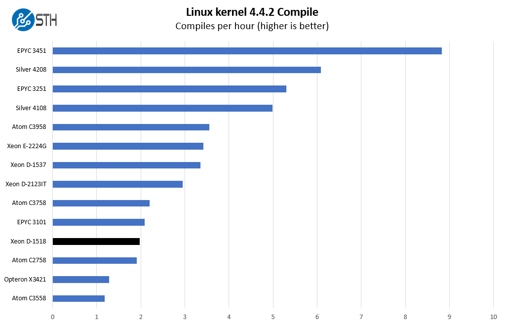 This is one of the most requested benchmarks for STH over the past few years. The task was simple, we have a standard configuration file, the Linux 4.4.2 kernel from kernel.org, and make the standard auto-generated configuration utilizing every thread in the system. We are expressing results in terms of compiles per hour to make the results easier to read: