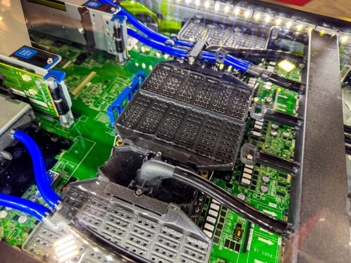 Iceotope has a really neat dielectric liquid cooling setup, and it was again showcased at SC24. We saw a demo of lceotope’s KUL EXTREME with the Valvoline Immersion Heat Transfer Fluid DE1 at the show. The booth was dominated by an Aston Martin Formula 1 car, but we still managed to find the liquid cooling.