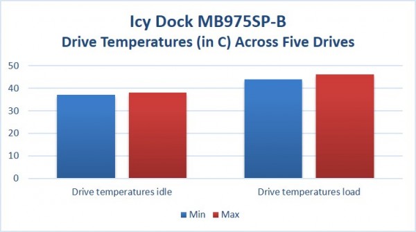 These temperatures are fairly good for a 5-in-3 unit where there is less room for airflow than a 4-in-3.