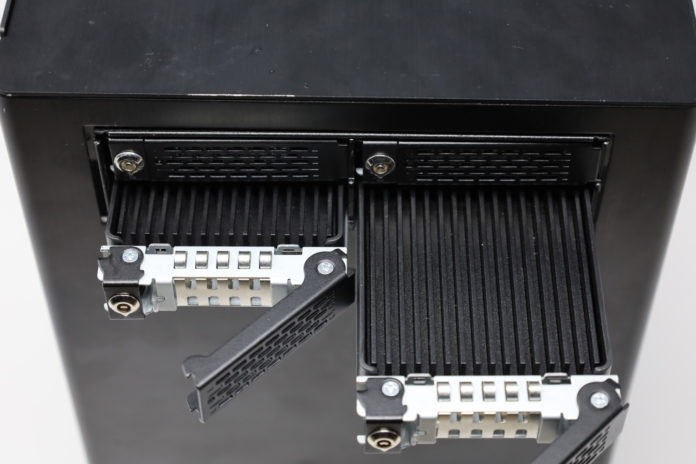 The rear of the MB720MK-B-V2 contains dual SATA power connectors, 4x OCuLink 4-lane connectors, two fans, and a fan speed switch. The speed selector came set to low and was hard to hear in operation and kept my drives nice and cool. As a result, I never felt the need to even use the high settings. The use of OCuLink is again an interesting decision, as while this cable connector provides an ideal physical size it remains a somewhat obscure interconnect that many uses will not be familiar with and motherboards may or may not support depending on the motherboard vendor. Things are certainly much less standardized than in the old SATA/ SAS days.