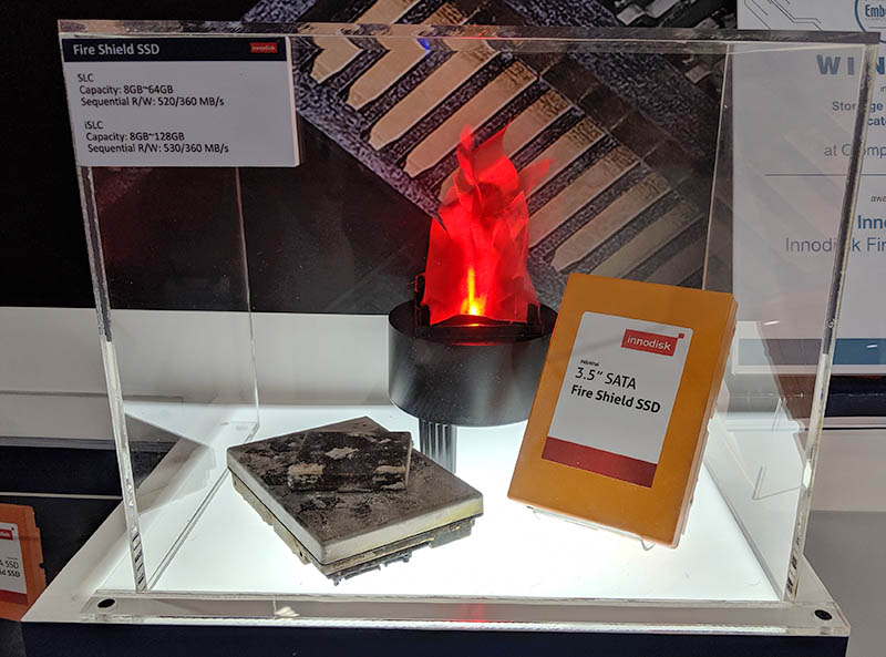 We are not sure if this is the ultimate answer for the industry, but it is likely that we will need something like this especially as autonomous vehicles become more commonplace. As companies focus on bringing compute to the edge, environments become more variable and the potential for fire is greater than in most data centers. For those in the industry, this will seem like a semi-ironic product. A fire at the Innodisk booth shut down the exhibition floor at Flash Memory Summit 2017.