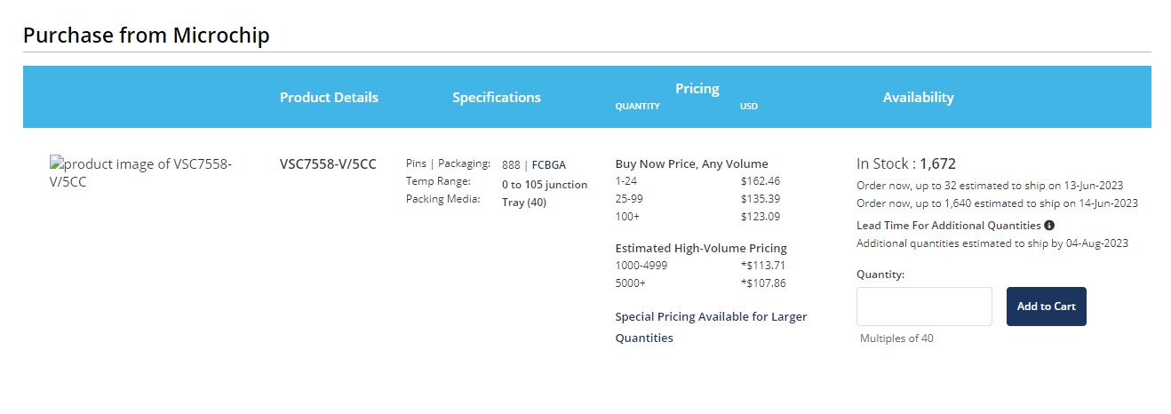 Microchip SparX 5 VSC7558 Purchase From Microchip