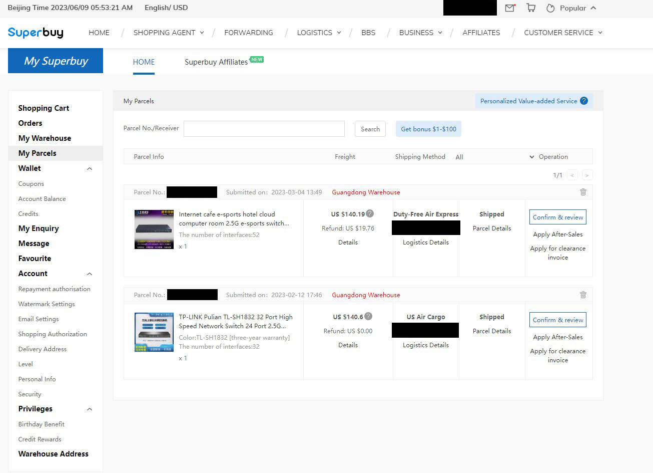 Superbuy Shipping Pricing Screenshot