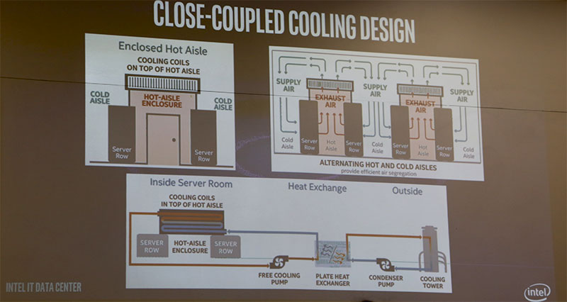 Intel converted the old fab in Silicon Valley to house its data center which was a massive cost savings opportunity for the company because it was re-purposing an existing facility. Intel is using the Bay Area’s temperate climate to cool the data center between around 60F to 91F without using chillers. We were told that even in the California sun, Intel only needs to use chillers for around 40 hours per year. Here is an example of what Intel is using for cooling:
