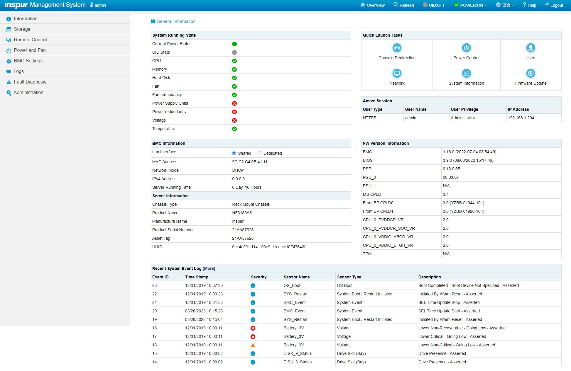 Inspur Management Dashboard