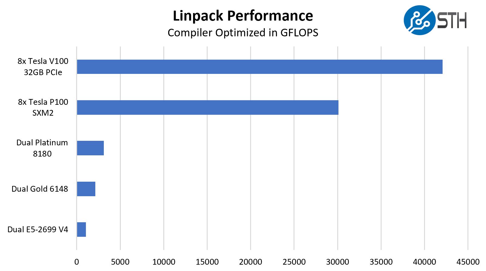 HPL Performance Comparison 8x Tesla V100 32GB PCIe
