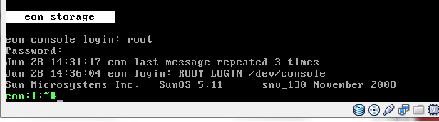 Virtual Box – Virtual Machine – EON ZFS Storage – Login