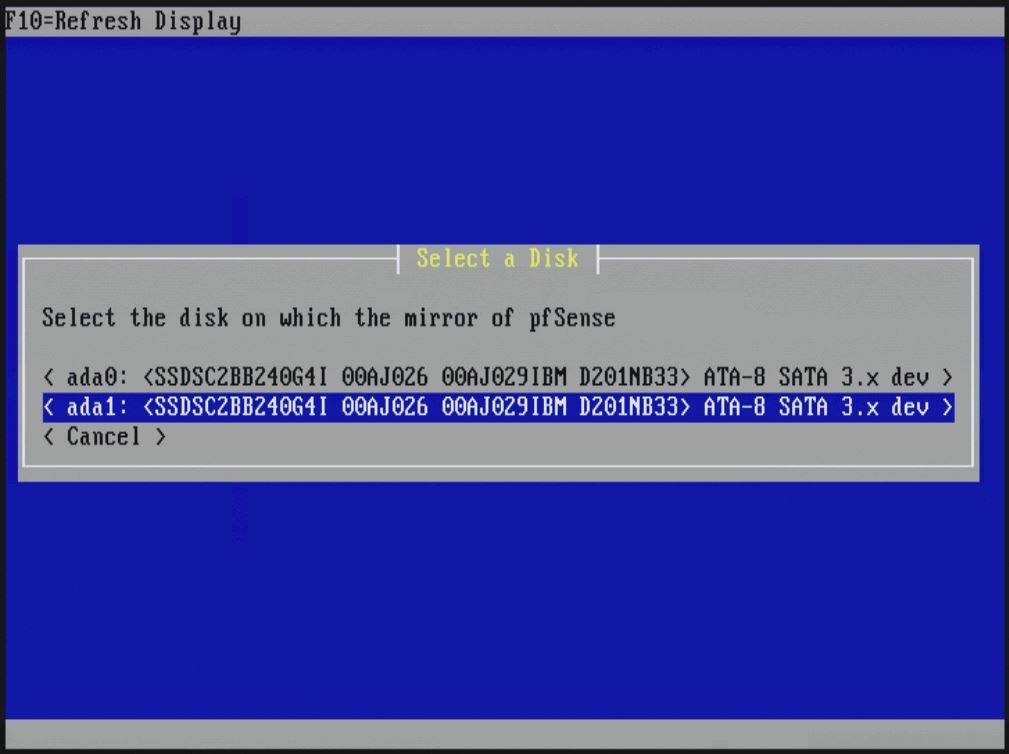 Setup Select Task Setup GEOM Mirror - select mirror disk