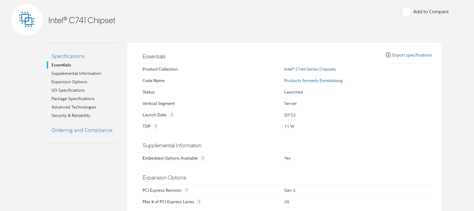 Intel C741 On Intel Ark Accessed 2022 03 27 Essentials And PCIe