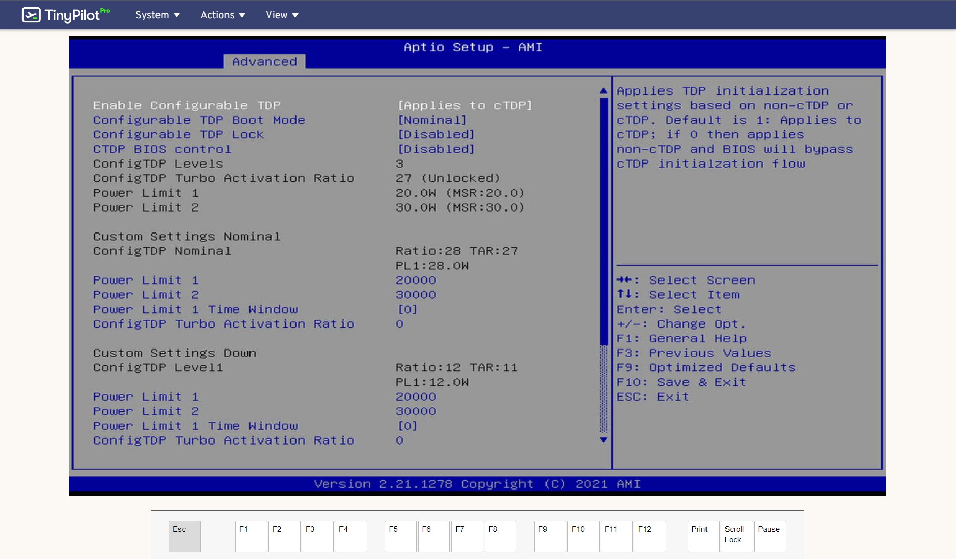 Intel Core I7 1165G7 6x I225 BIOS Power And Performance Menu Config TDP Configurations