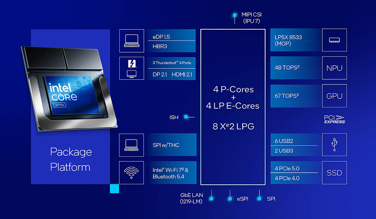 Intel says Lunar Lake features 120 platform TOPS. 67 TOPs from the iGPU, 48 TOPS from the NPU, and 5 TOPS from the CPU.