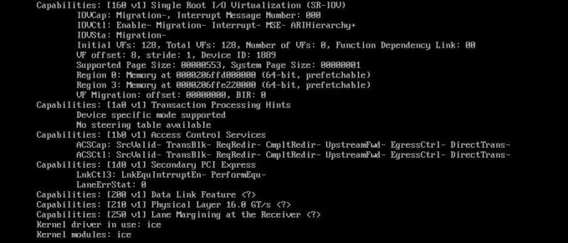 We often get questions around the SR-IOV lspci capabilities, so here those are: