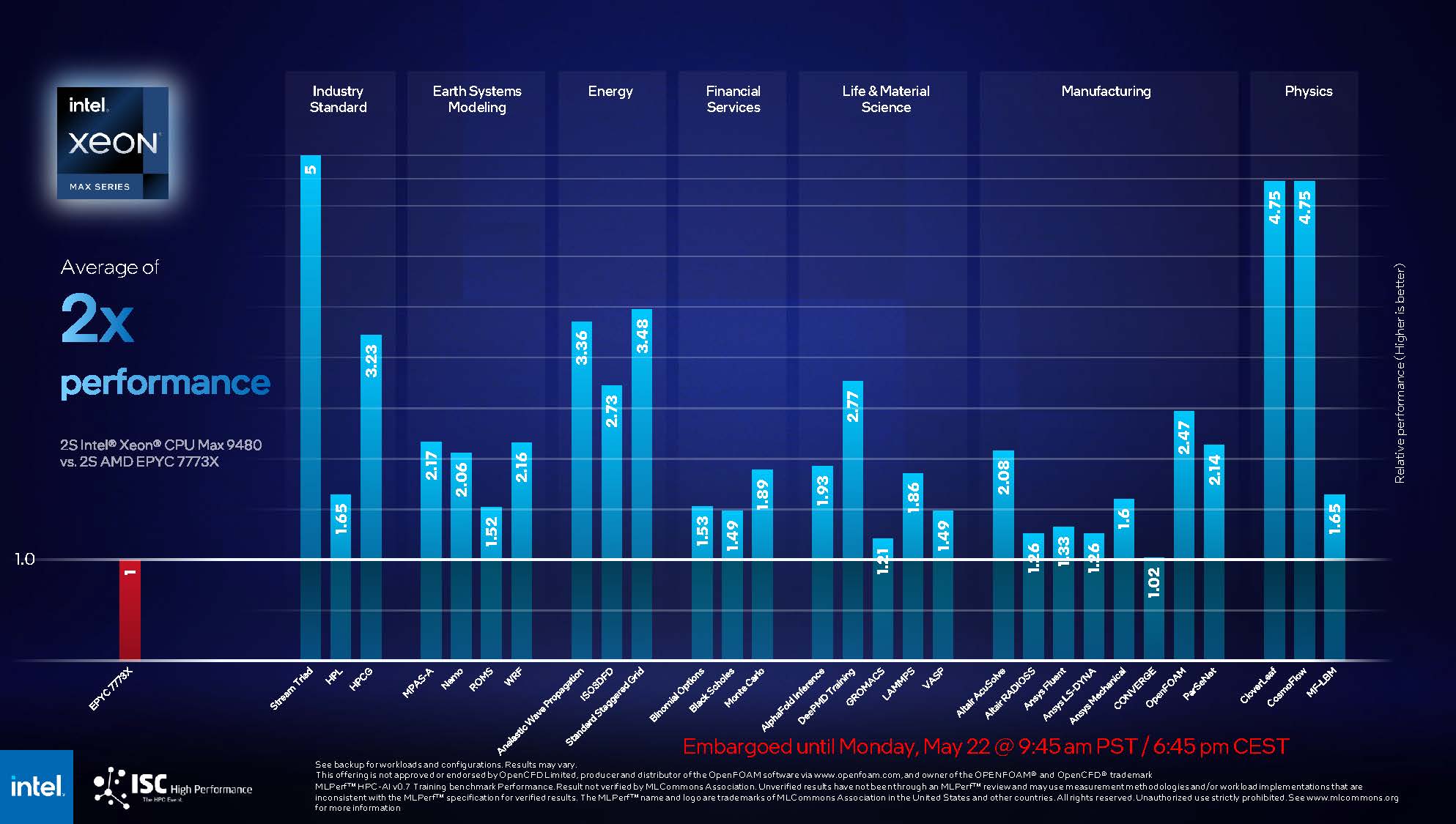 Intel ISC23 Intel Xeon Max Versus Milan X