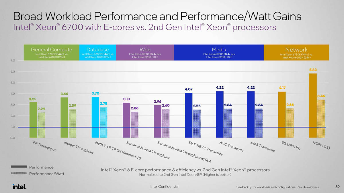 Intel Xeon 6700E To Cascade Lake Performance