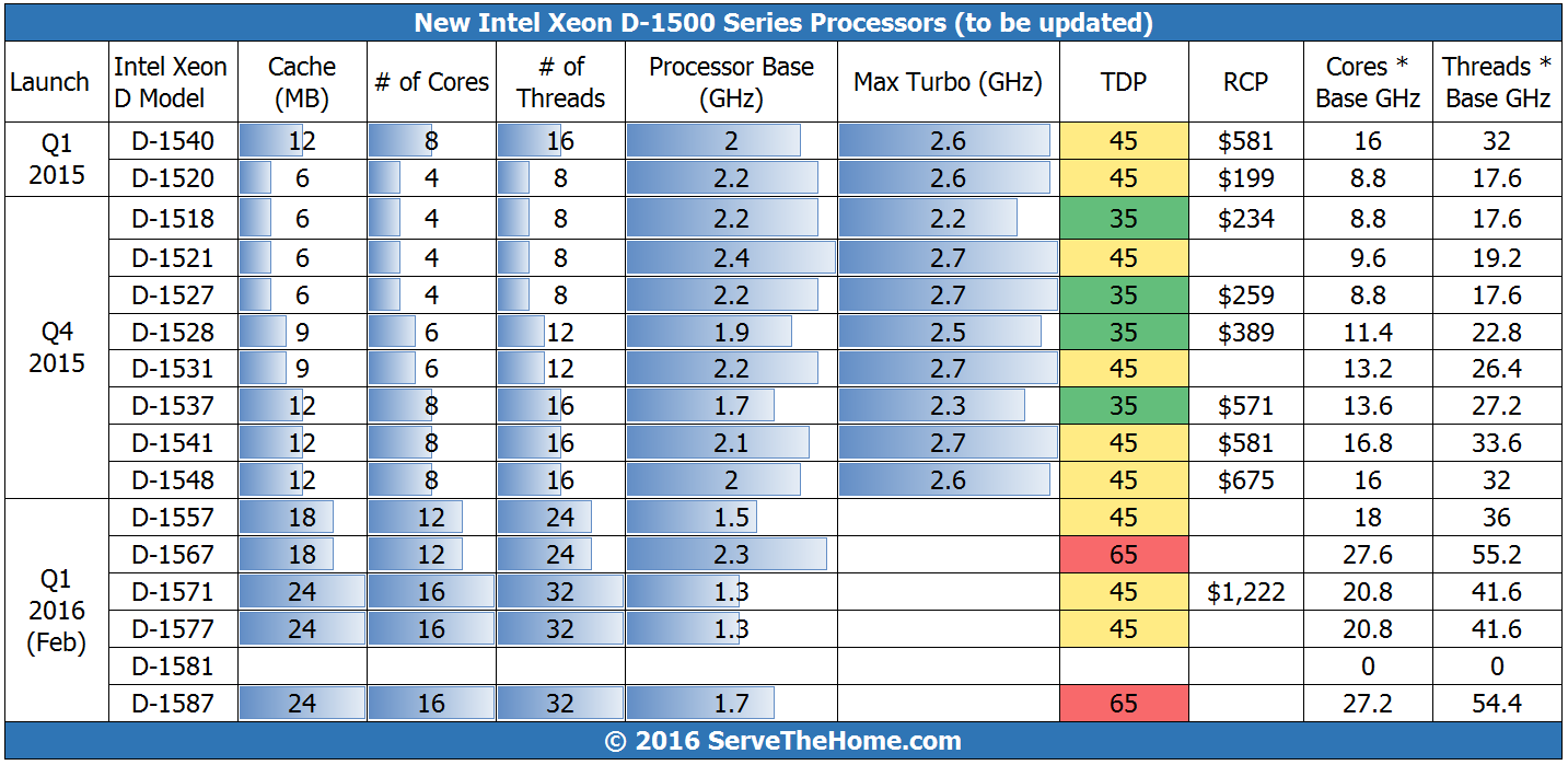 Intel Xeon D Lineup Feb 2016 to be updated with final