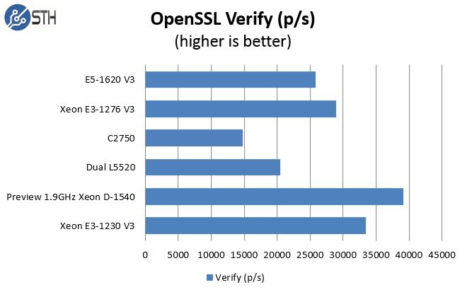 Pre Production Intel Xeon D-1540 OpenSSL verify comparison