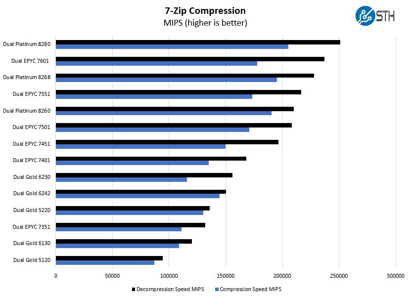 Interestingly here, the Intel Xeon Gold 6230 is running between the AMD EPYC 7351 (16-core) and AMD EPYC 7401 (20-core) parts in terms of performance. Also, with the core count boost, it is getting closer to the Intel Xeon Gold 6148 a popular HPC part.