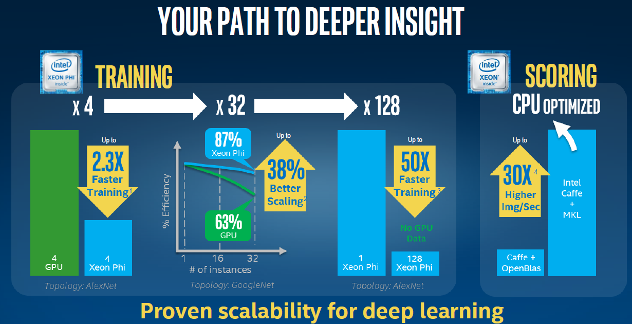 Along with the new Intel Xeon Phi x200 series Intel is also touting its machine learning capabilities. The Intel Xeon series is still the general purpose compute solution for the industry, but if you are doing machine learning, you are likely to use NVIDIA GPUs for training.