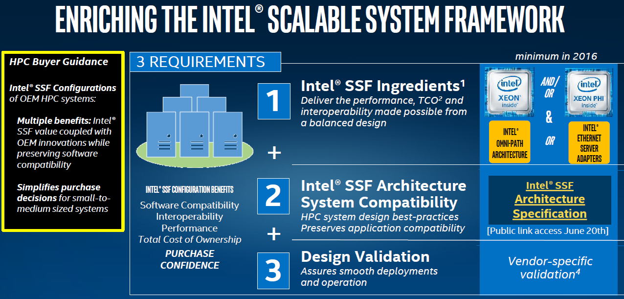 Intel ISC 2016 Intel Scalable System Framework requirements