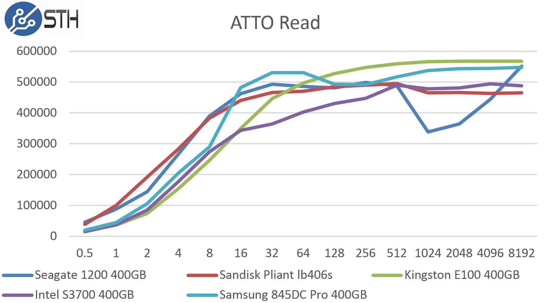 Kingston E100 400GB – ATTO Read Benchmark Comparison