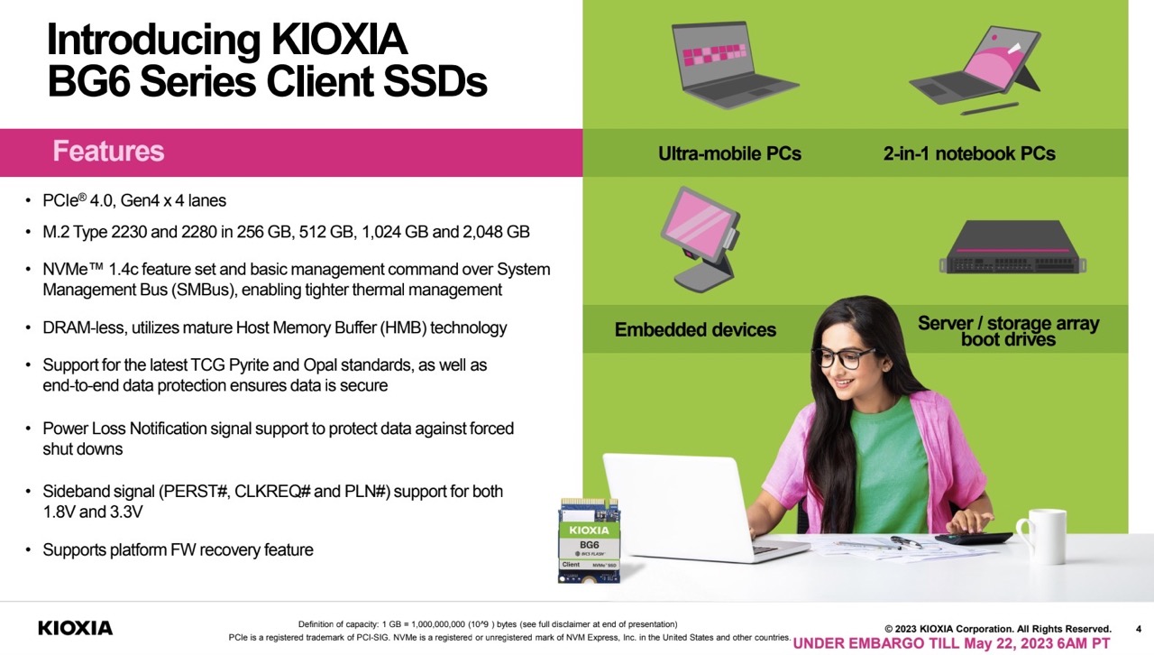 Kioxia BG6 PCIe Gen4 DRAM-Less NVMe SSD Launched