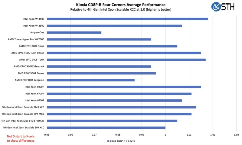 Kioxia CD8P-R 30.72TB Performance by CPU Architecture