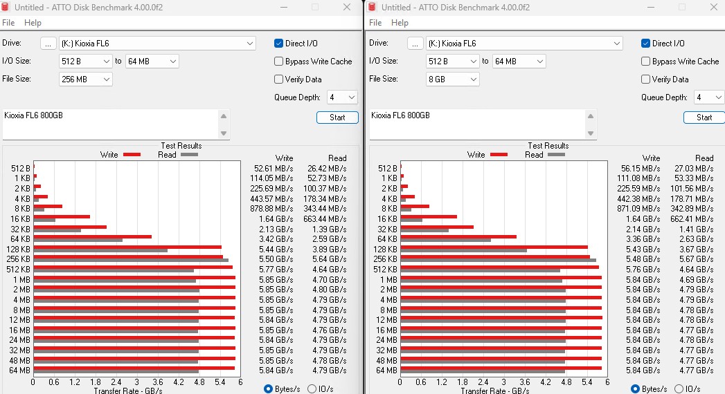 Kioxia FL6 800GB ATTO Disk Benchmark 256MB And 8GB