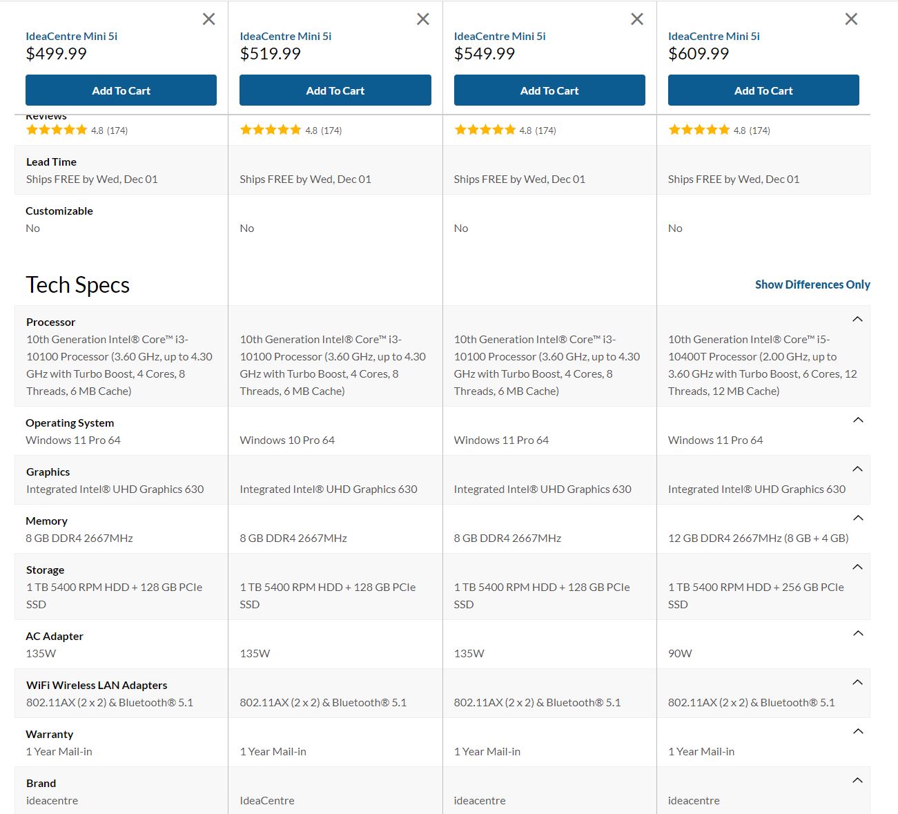 Lenovo IdeaCentre Mini 5i Price Options