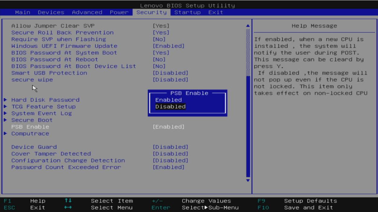 Lenovo ThinkCentre M75q Tiny Gen2 AMD PSB On By Default Disable Security