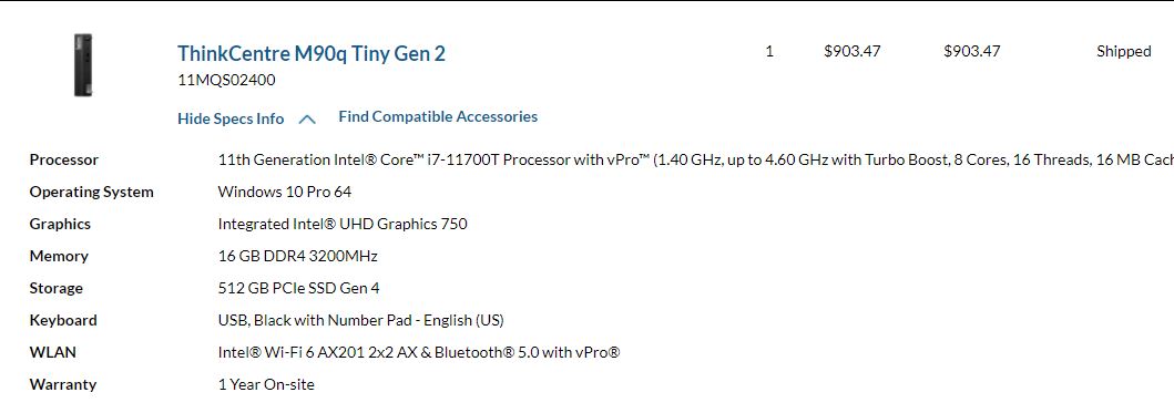 Lenovo ThinkCentre M90q Tiny Gen 2 Order Price