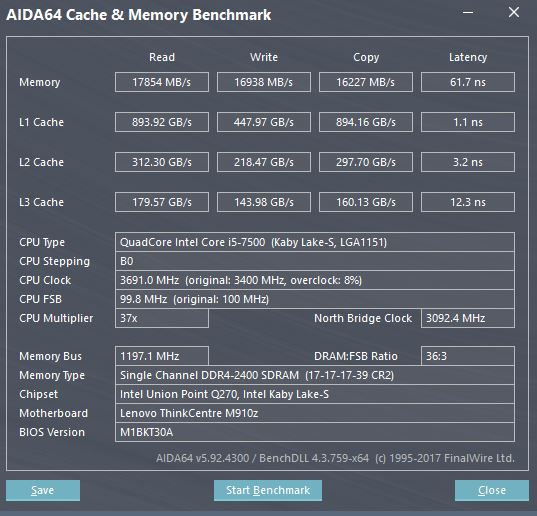 The Core i5-7500 is an excellent choice for the M910z, with a Turbo speed of 3.8GHz and low TDP of 65W gives it serious processing power while maintaining low heat output. It lacks Hyper-Threading which would double the thread count. Given a choice of a physical core or a HT core, we would always take physical cores.