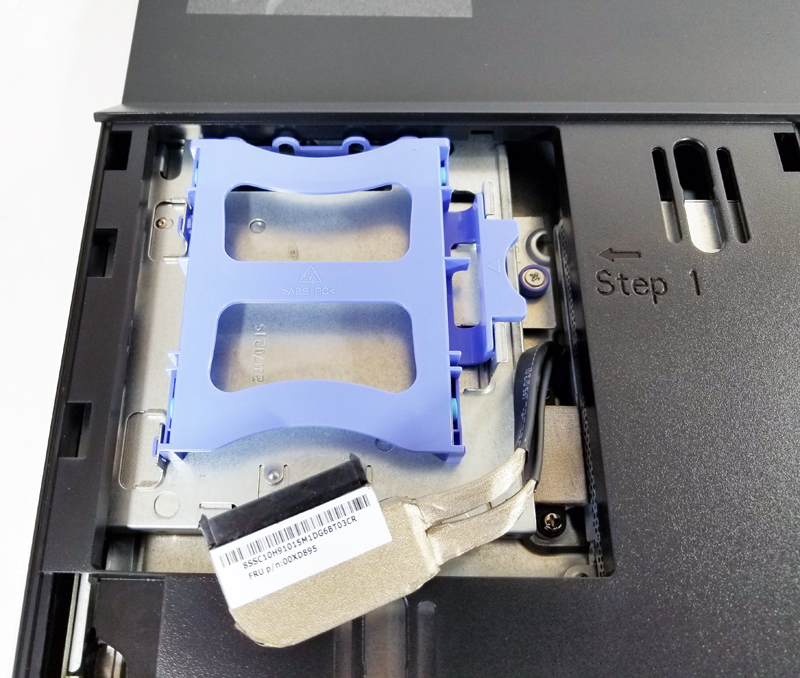 The right side has the memory bay; we have one SODIMM installed and one empty slot. For performance reasons, we would suggest having two 8GB SODIMMs brining the total to 16GB. That configuration also uses dual channel memory which effectively gives twice the memory bandwidth to the CPU.