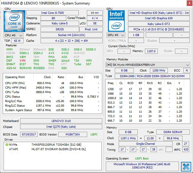 For testing or ThinkCentre M910z AIO came equipped with: