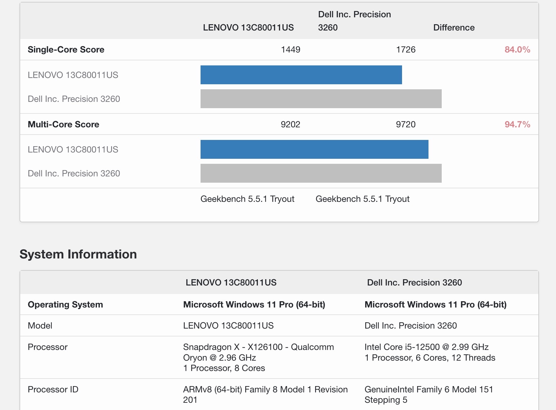 Qualcomm Snapdragon X X126100 To Intel Core I5 12500 Geekbench 5