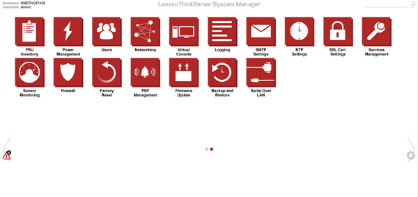 Lenovo ThinkServer RD550 System Manager Control Screen