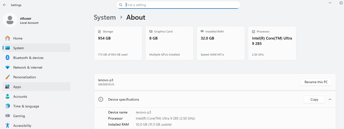 Lenovo ThinkStation P3 Tiny Gen2 System About