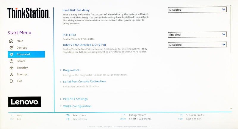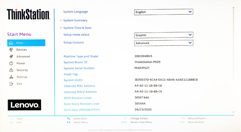 The UEFI BIOS for the Lenovo ThinkStation P920 Tower is simple and straight to the point. It is easy to tab to different BIOS sections and adjust needed options.