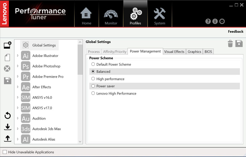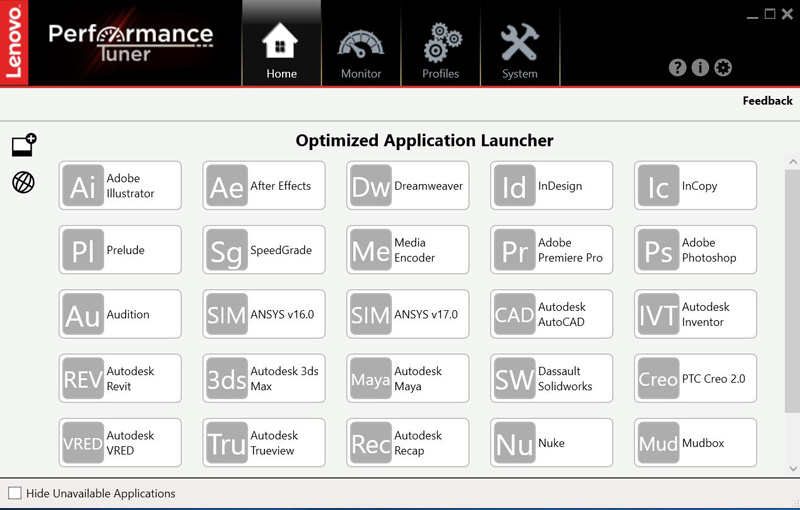 Our P920 did not include and pre-loaded software, none is really needed. On Lenovo’s website, one can find Lenovo Performance Tuner and use this to pre-tune application settings.