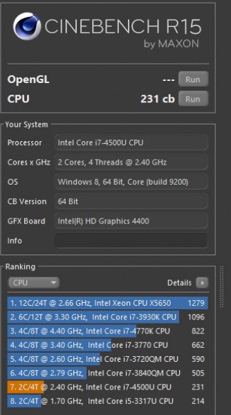Lenovo Yoga 2 Pro Core i7 Cinebench