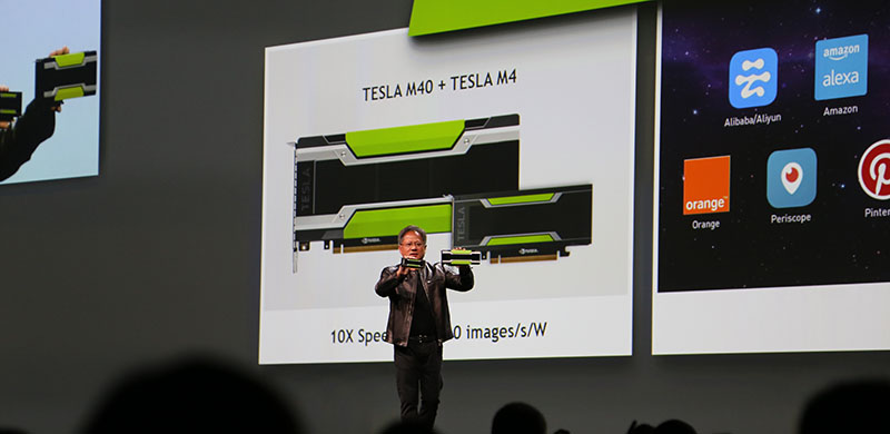 Tesla M40 for training and Tesla M4 for making inferences. M4 is less than 50 watts and works in 1U computers. 20 images per second per watt. “No reason to use FPGAs”.