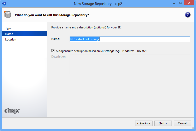 XenCenter Console - Name VHD Library
