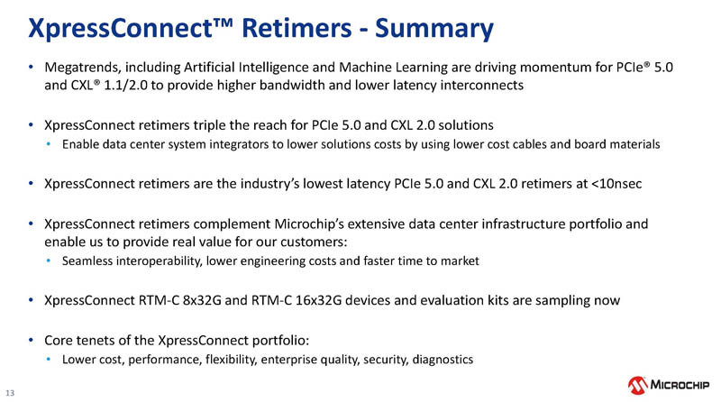 Microchip XpressConnect PCIe CXL Retimer Summary