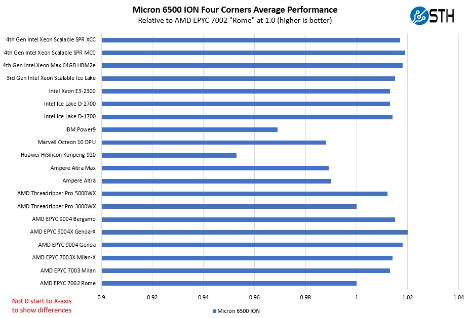 Micron 6500 ION Four Corners Average Performance By Architecture Zoomed