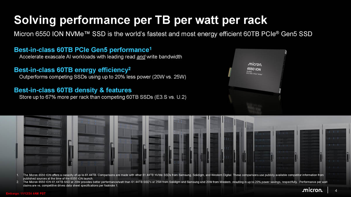 Micron 6550 ION 61.44TB PCIe Gen5 NVMe SSD Launched