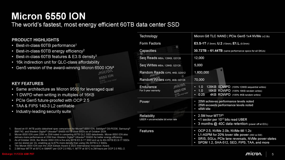 Micron 6550 ION 61.44TB PCIe Gen5 NVMe SSD Launched