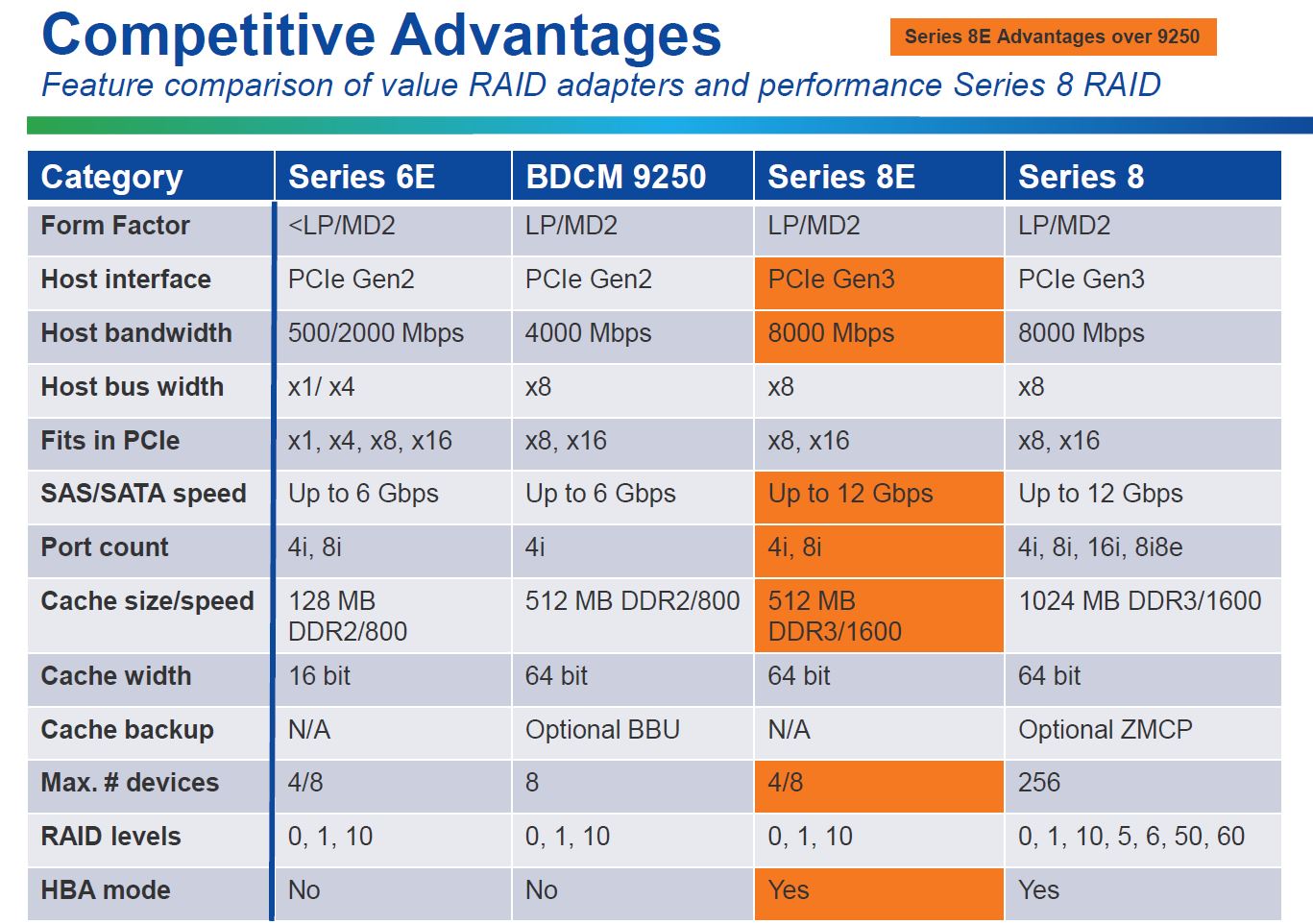 Microsemi 8E Series RAID Adapters Competitive Table