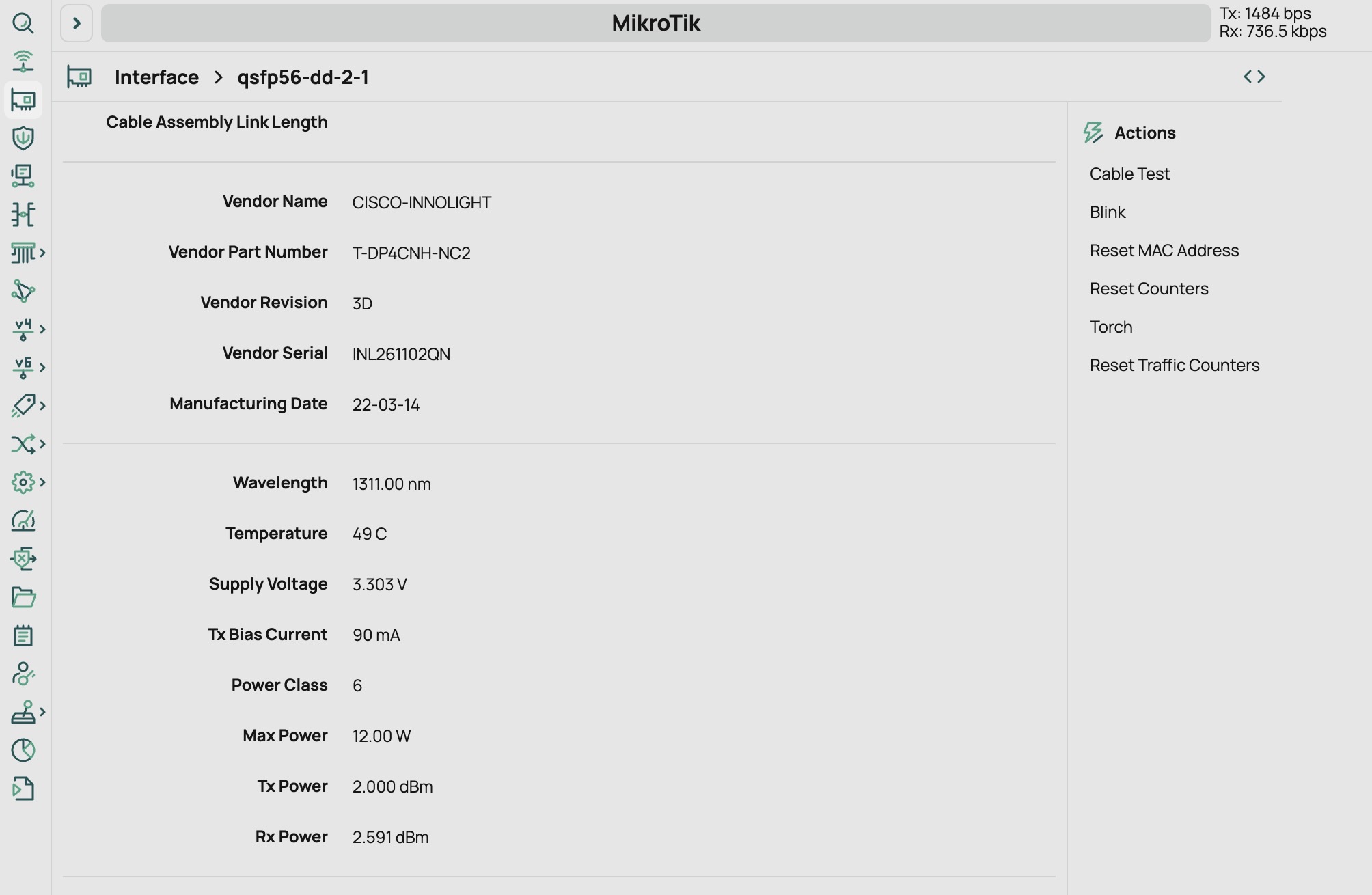 Cisco QSFP56 DD 400G DR4 Optics In MikroTik CRS812 DDQ