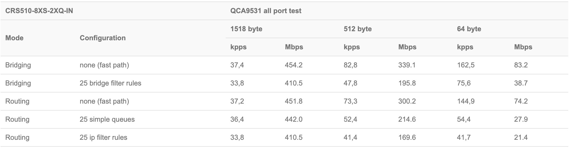 MikroTik CRS510 8XS 2XQ IN Briding And Routing Performance From MikroTik