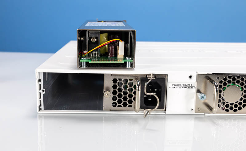 MikroTik CRS518 16XS 2XQ Rear PSU Out Connector Side