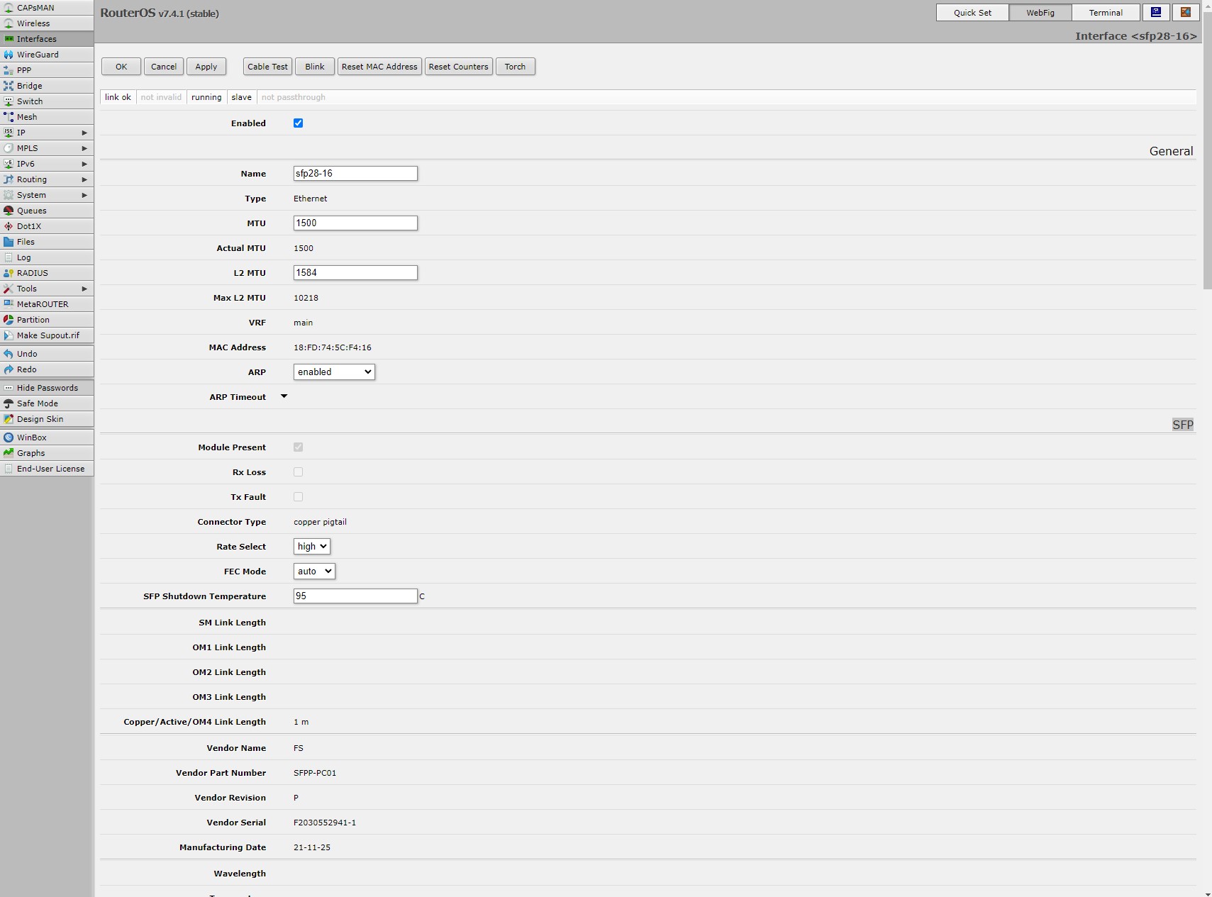 MikroTik CRS518 16XS 2XQ WebFig SFP28 Interface